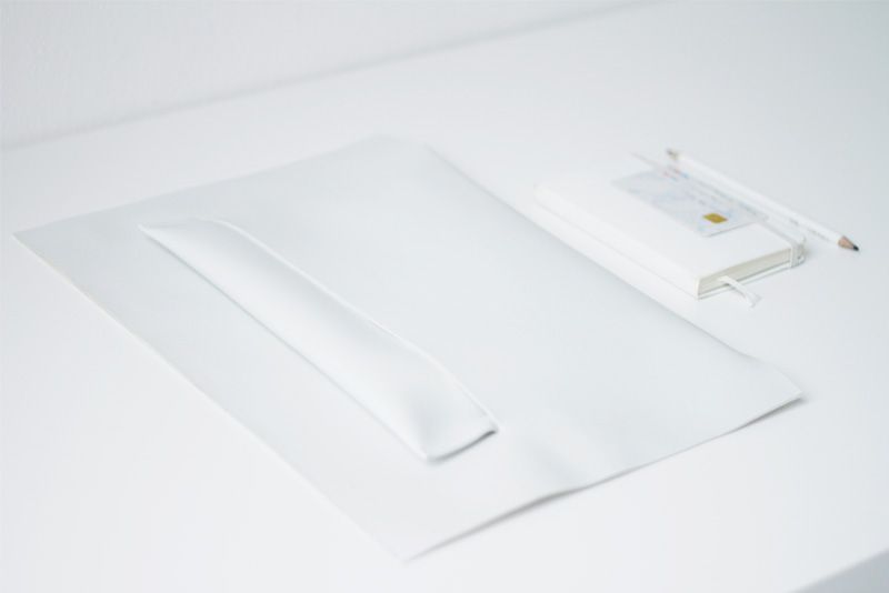 The instagrammers among us already know that last week I've been making little paper samples of pouches and bags. Products that allow different interpretations are always my favorites, and so was this simplistic idea for a bag. You can actually wear this clutch/pouch three ways; with your hand through the slit, holding the pouch like on picture two and the third; putting your arm through it like a sleeve.